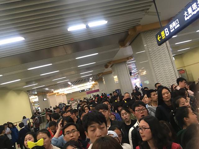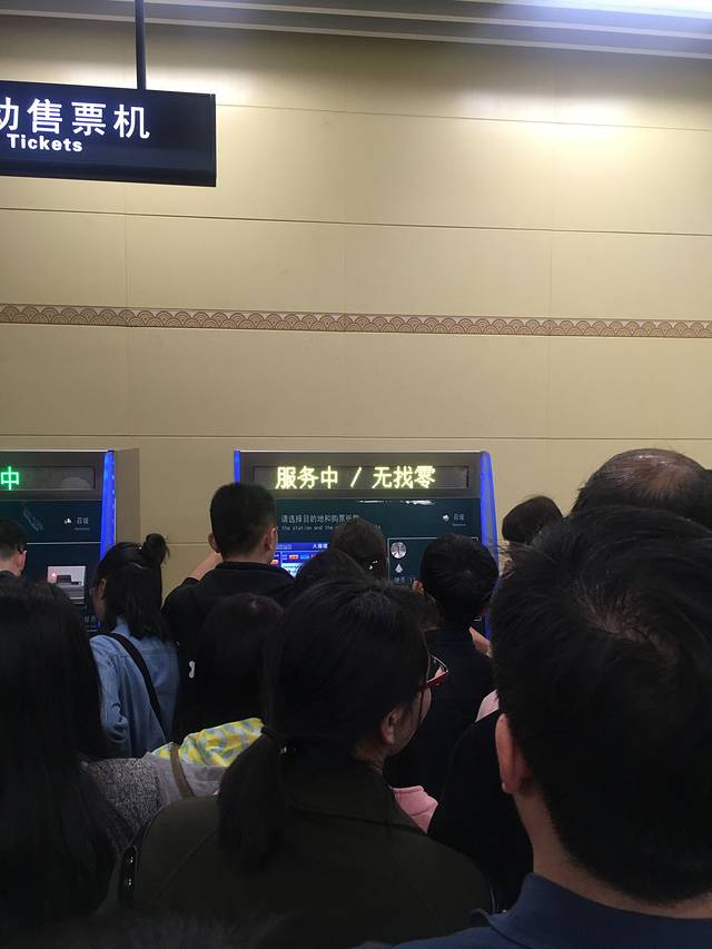 路面交通堵塞,地铁自助买票至少要等1h,碰上假期哪都人多。