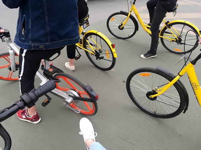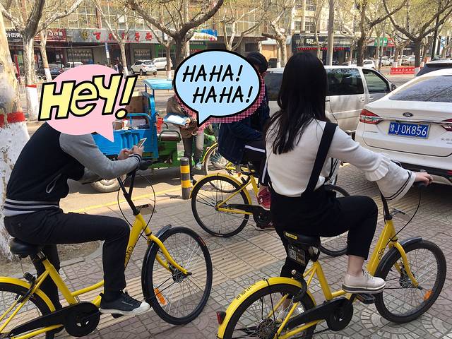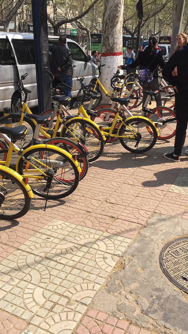 🏯小雁塔北门,有很多小黄车和摩拜单车。