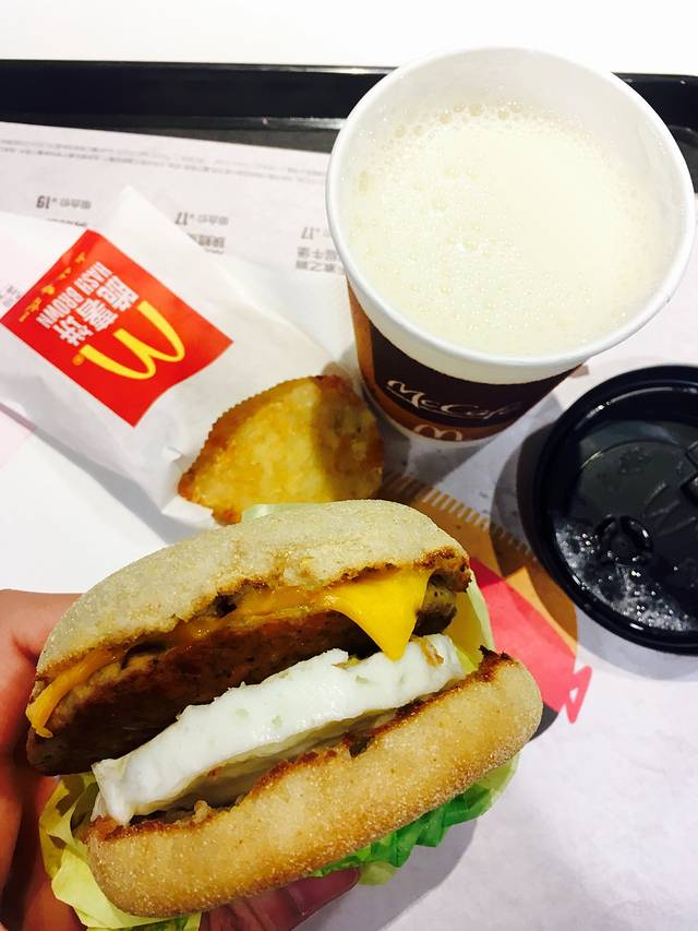 酒店附近没卖早餐的小摊,只好去m记了~~