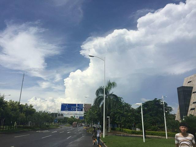 从中山大学出来,看到这雨后的大学城,不禁想吟诗一首:这里的白云不一般,我喜欢啊我喜欢,我喜欢啊我喜欢,这里的白云不一般。明明四下无风,空中却变幻莫测,时而气势磅礴时而纹丝不动,与这无人的街道呼应,不由自主地驻足欣赏了起来。