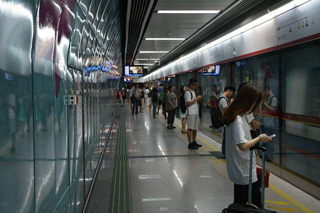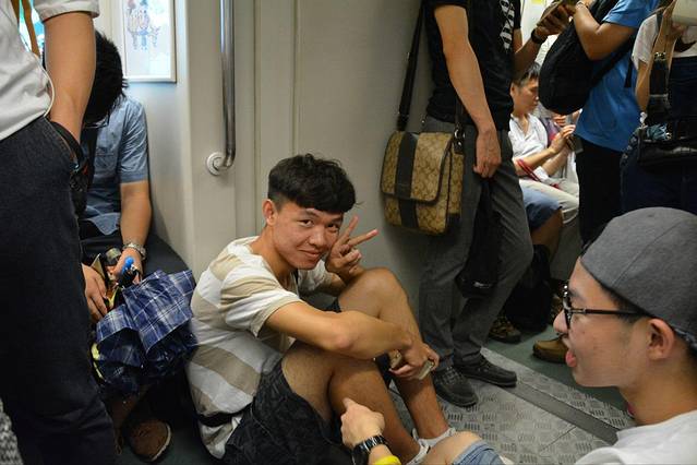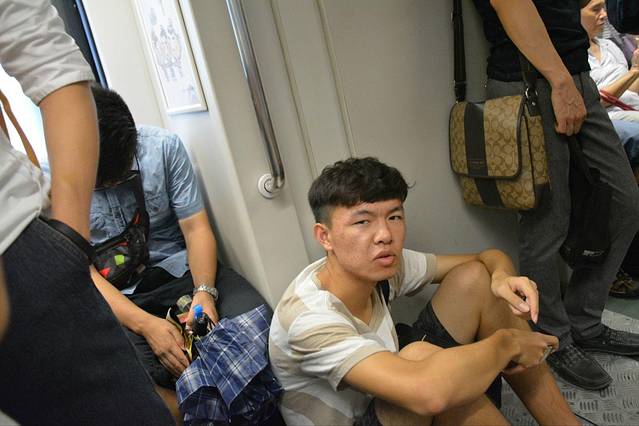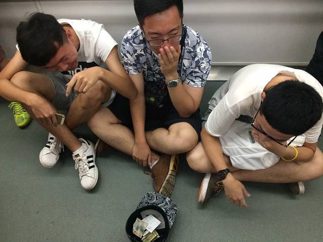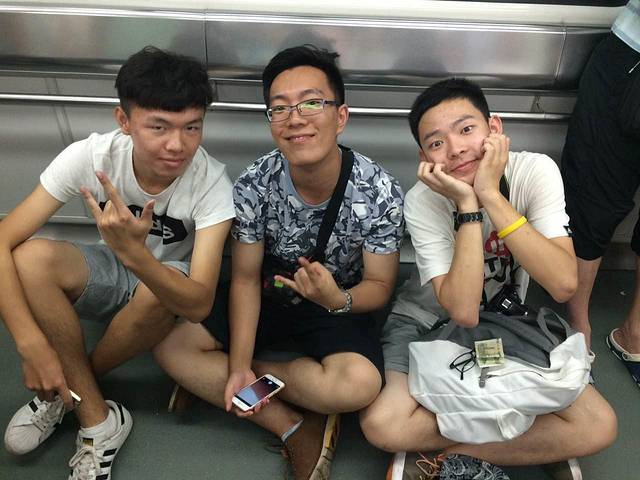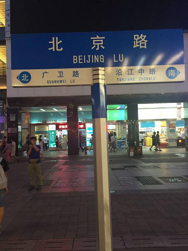 上了岸才知道晚上要去北京路参观,于是又马不停蹄地赶往地铁站,在地铁上席地而坐的有很多,坐下来还卖萌的我还是头一次见哈哈哈~