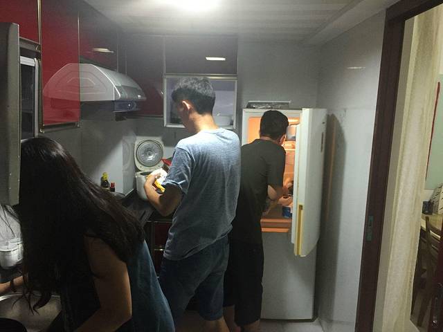 在没来广州之前,毓姐就让大家在群里报自己想吃的菜名,她信誓旦旦地要露一手。还记得我之前一直吼着要喝羊杂碎哈哈。于是三个男生给毓大厨打下手,每个人嚼着耀姐从长沙带来的槟榔,大家你一言我一语地讲述着这些年来的经历,配合着锅碗瓢盆叮咣叮咣的节奏,真正的人间烟火大概就在厨房这方寸之间吧。就像妈妈以前对说的那样,并不是饭店里的饭菜不可口,只是少了大家做饭时候其乐融融地交谈,少了彼此间的配合,这就是为什么每年过年大家都要团聚一堂准备年夜饭的原因。