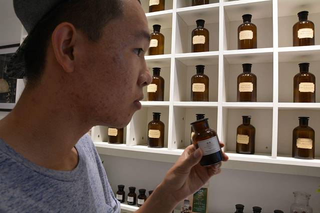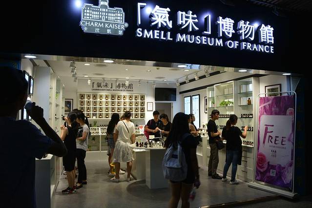 途经一个气味博物馆,里边的瓶瓶罐罐装满了不同的味道,真的是不同啊!香草,柠檬之类的气味还可以理解,在这里竟然发现了初恋的味道,虽然鼻炎晚期的我根本没有闻出来任何特殊气味,我猜应该像冬天的雪夏天的花吧。倒是旁边的耀姐握着一个标有“湘西腊肉”的小黑瓶跟我说:"对对对,湘西腊肉就是这个味!我有一个湖南的同学给我们带过他们家乡的土特产,就是湘西腊肉!"