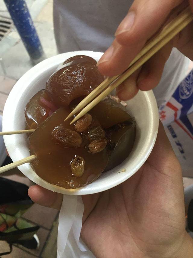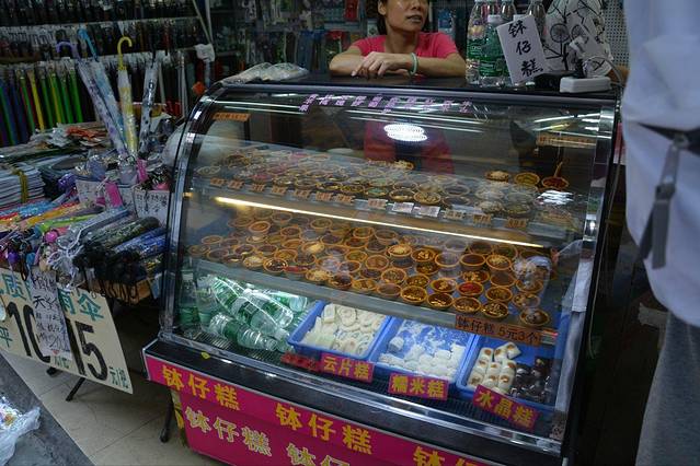 到后来,实在是吃不下店里的东西了,又开始尝试街边小摊,比如这个叫做钵仔糕的点心。不值评价吧,女生应该很爱吃。