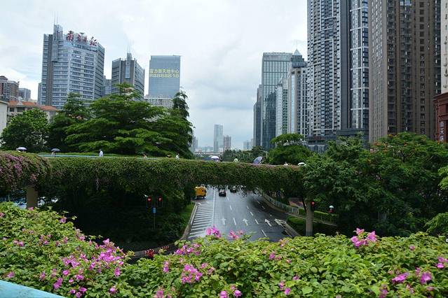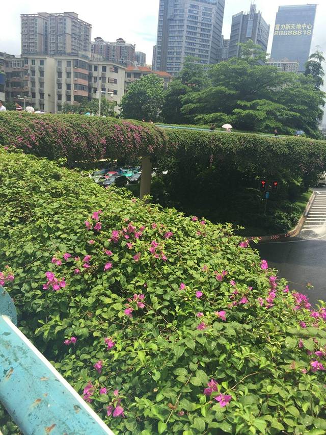 从点都德出来都中午了,下午毓姐还要回学校参加一个考试(现在想想,三个考完试的人去骚扰一个还在考试周的女子简直丧心病狂啊),所以接下来一行人就准备前往广州大学城。途径的一个过街天桥,满桥的鲜花向我们证实了广州的别称“花城”绝非浪得虚名啊。