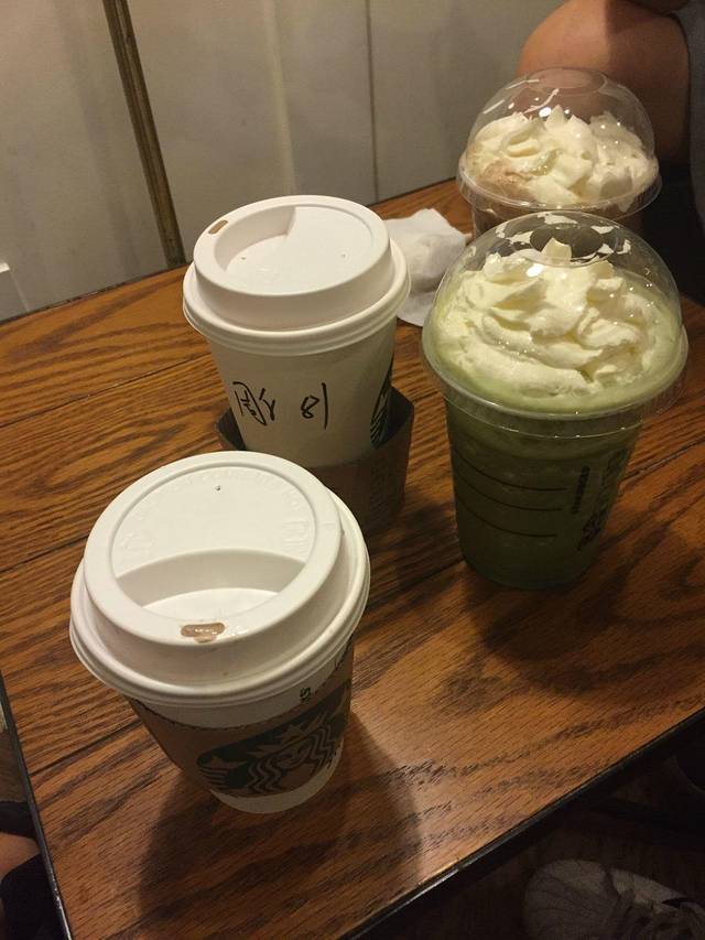 正当我们无限遐想的时候,广州的天气成全了我们。说下就下的雨顷刻间将我们赶进了星巴克。于是乎,本来打算到星巴克喝咖啡聊天的,最后变成了找地方避雨。