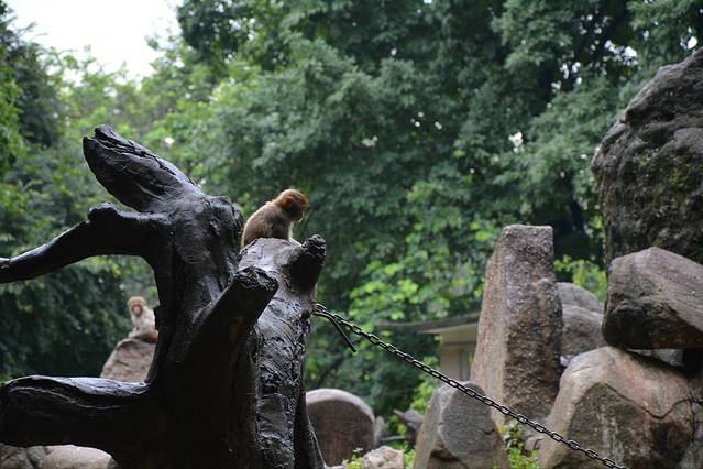 拍了许多猴山的照片,耀姐说这个最有感觉。可能在这里看不出来吧,这只小猴子真的特别小,一个猴静静地坐在假山上看着下边的老猴子们嬉笑打闹,超然于物外。大概是个小女孩,否则怎么能这么安静。