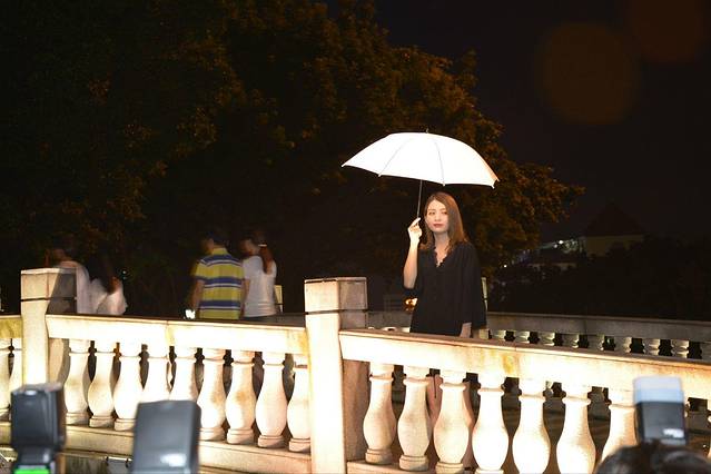 从沙面出来,偶遇一群摄影爱好者练习拍人像。不知道的人还以为是某个大明星来游览了,一堆长枪短炮对着她拍个没完。不过这把会发光的伞算是一个亮点,要是有这把伞在雨夜漫步,岂不是美滋滋?