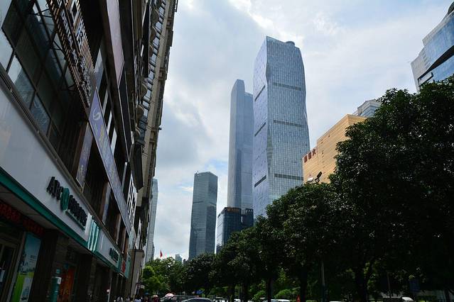 为了让大家有充足的精力逛广州,毓姐决定早晨不设闹钟大家自然醒,毕竟前一天舟车劳顿,于是乎一睁眼太阳就高高挂起。万幸的是小屋正好在广州市中心的位置,一下楼就可以看到作为一线城市应有的高楼林立。简单的准备行李之后,城市探索四人组决定穿梭在这些楼宇中,去探寻广州的早茶文化。