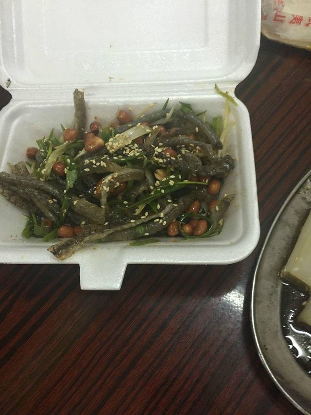 吃过午饭后,又到旁边的陈添记店里品尝。广州陈添记只卖三样小食:祖传爽鱼皮、豉油王蒸猪肠粉及传统西关艇仔粥。用鲮鱼皮来制作,做好之后放入雪柜冻着,好爽口弹牙。加上花生、芫茜以及淋上面的酱油芝麻,味道一流。