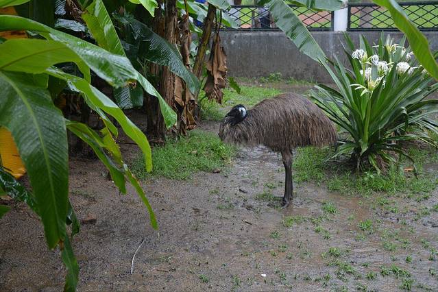 突然就下起了雨,动物园里的动物都躲在自己的棚舍里避雨,唯独鸸鹋,傻乎乎的呆在雨中若有所思这什么。真的是笨啊,按照毓姐的理解是鸸鹋原产地是澳洲,那地方不经常下雨,所以对它来说很稀奇,而耀姐则说这一看就是失恋了,想让冷冷的冰雨在脸上胡乱的拍,装个酷。