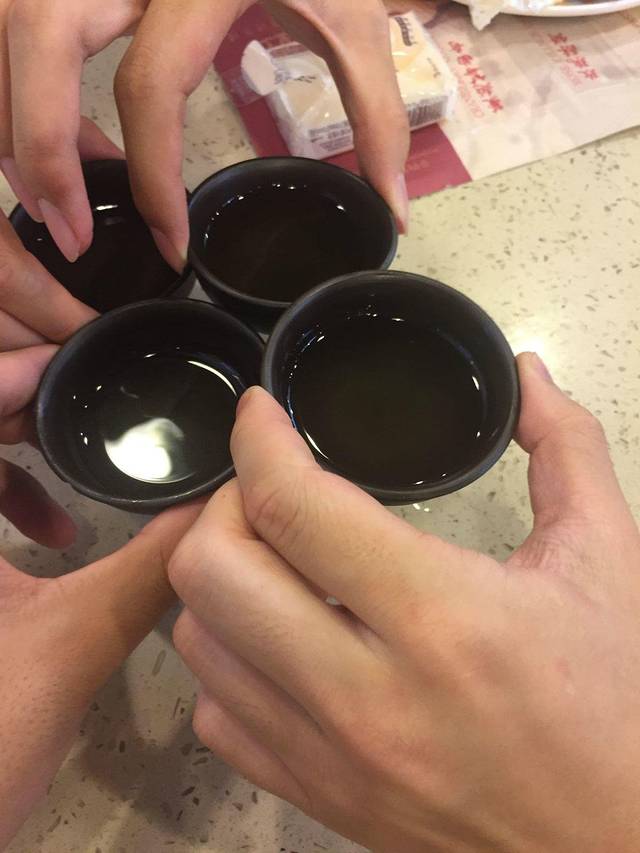 忘了是什么茶了,根本不如蜂蜜柚子茶好喝啊,大概是因为文化差异吧,四个故乡都是北方的人笨手笨脚地模仿着当地人的喝茶习惯,最终都败下阵来,为什么不做一回真实的自己呢?毕竟鄂尔多斯曾一度被称为“歌的海洋酒的故乡”,大家就把酒桌上的那套原封不动地应用在这里,就差用家乡话划拳了。