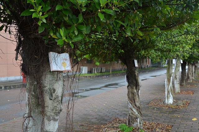 走着走着,无意间向两旁的行道树看去,被这三行情书吸引了,一路读下去,每一棵树都有着自己的小情愫,有的在写恋爱中的美好,有的在写失去恋人的懊悔,有的在畅谈一片光明的未来,有的在诉说生活的不幸。突然很喜欢这个静谧浪漫的校园。