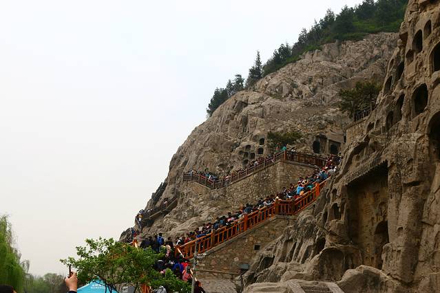 吃完早点溜达回酒店,提前约好的专车也已经到位,出发前往这次来洛阳的主要景点龙门石窟,一路上交通还是比较顺畅,就是到了龙门大桥就开始堵车,大约堵了半个小时,终于到达龙门石窟的游客服务中心,现在龙门石窟是智慧旅游景点,不用排队买门票,直接关注微信官方公众账号就可以购票,景区无线网络全覆盖,微信可以听讲解,非常方便,但是我们去的时候人非常多,无线网络是用不上了。