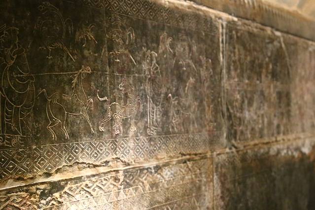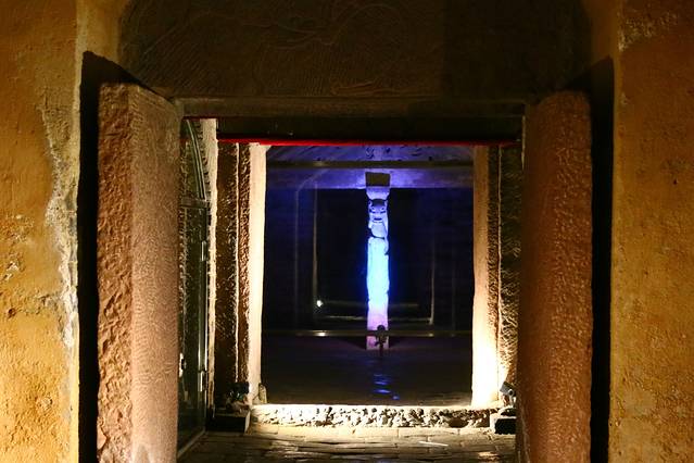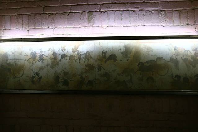 我们先从地下陈列展开始参观,一走进地下展厅,就能明显的感觉出一股凉意,我赶紧把帽衫穿起来,本着对博物馆的尊敬以及光线的比较暗,还有壁画展是不让拍照,我并没有拍多少照片,大家有兴趣的可以去古墓博物馆去参观,古墓博物馆无须门票,参观壁画展也只是需要花1元钱购买鞋套就可以参观,还是很有参观价值的。