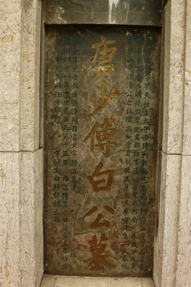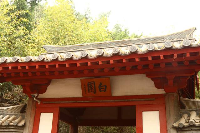 白园坐落在龙门石窟景区东山琵琶峰上,是唐代著名诗人白居易的墓园。白园依山而建,秀丽古雅,园内主要小景点有听伊亭、乐天堂、诗廊、墓体区、日本书法廊、道诗书屋等10余处。当你进入白园大门后,拾级而上,来到山腰处的“听伊”亭,这里是白居易晚年与其好友元稹、刘禹锡等下棋、喝酒、论诗的地方。之后就是“乐天堂”,白居易的塑像就在堂内。站在堂前,可以深切回味诗人的原作“门前常流水,墙上多高树,竹径绕荷池,萦回百余步”的内涵。瞻仰大诗人的塑像后,沿着右边的石级可以到达琵琶峰顶,峰顶上就是白居易的墓地。墓前立有高大石碑3块,其中1块上刻“唐少傅白公墓”6个字。墓地周围翠柏环抱,给人以庄严肃穆的感觉。园区内的诗廊,立有石碑38块,由中外名家书写,行、草、篆、隶等字体齐全,既可以欣赏白居易的名作,又可以领略书法艺术之美。日本书法廊是为中日书法交流而建,大多是当代日本书法名家的作品。
