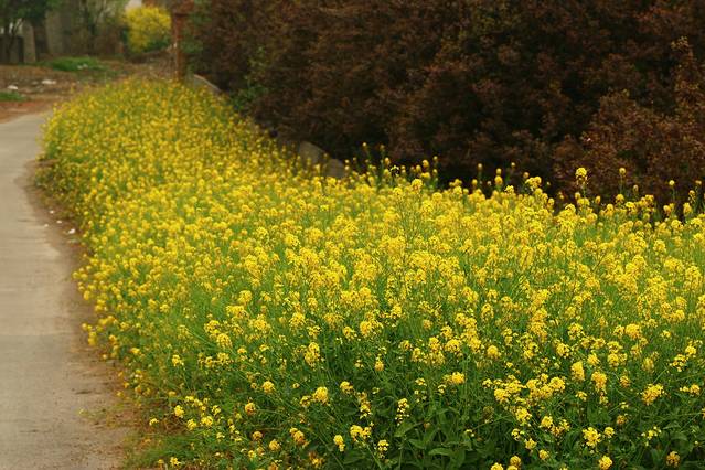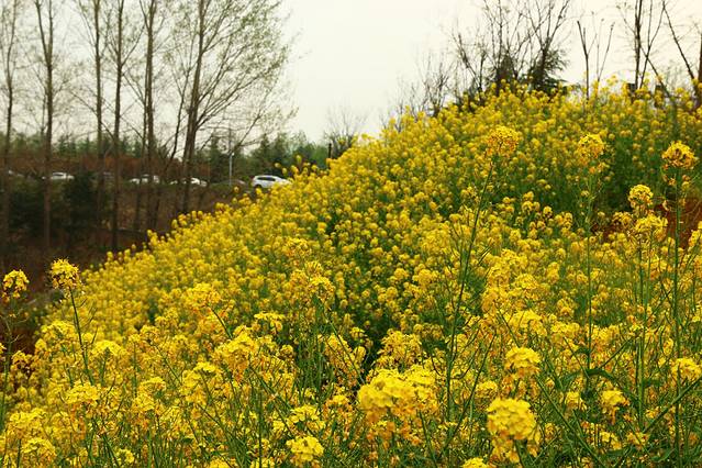 龙门石窟这一趟游玩下来特别耗费体力,坐电瓶车出了景区,联系专车师傅来接我们回去,但是龙门大桥依然是堵车严重,为了节省时间,我们步行过了龙门大桥避免堵车,到了司机师傅停车的地方,偶然发现有一片油菜花甚是好看,便拍了下来。