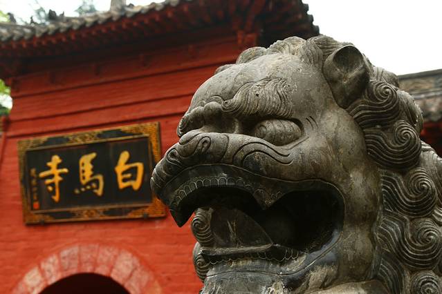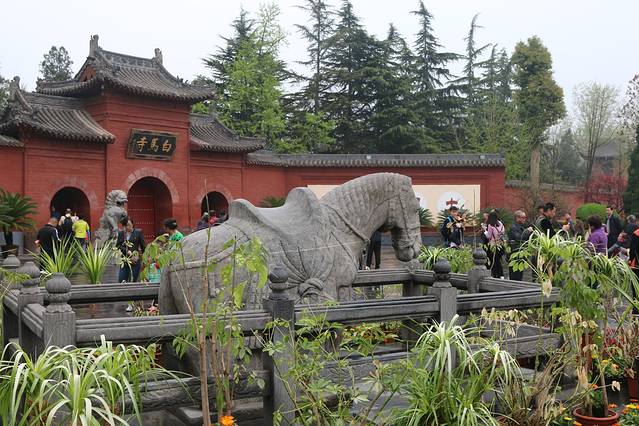 白马寺位于河南省洛阳市老城以东12公里,洛龙区白马寺镇内。创建于东汉永平十一年(公元68年),中国第一古刹,世界著名伽蓝,是佛教传入中国后兴建的第一座官办寺院,有中国佛教的“祖庭”和“释源”之称,距今已有1900多年的历史。现存的遗址古迹为元、明、清时所留。寺内保存了大量元代夹纻干漆造像如三世佛、二天将、十八罗汉等,弥足珍贵。佛教在中国扎根、传播最初的二百年,整个过程都与白马寺息息相关。这里是中国第一次西天求法的产物,是最早来中国传教弘法的僧人的居所;这里诞生了第一部中文佛经和中文戒律,产生了第一个中国汉地僧人……总之,白马寺是与中国佛教的许许多多个“第一”紧紧联在一起的,这让它成为名副其实的中国佛教的祖庭和释源。白马寺整个寺庙坐北朝南,为一长形院落,总面积约4万平方米。 主要建筑有天王殿、大佛殿、大雄宝殿、接引殿、毗卢阁等,均列于南北向的中轴线上。虽不是创建时的“悉依天竺旧式”,但寺址都从未迁动过,因而汉时的台、 井仍依稀可见。有五重大殿和四个大院以及东西厢房。