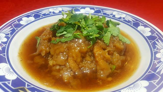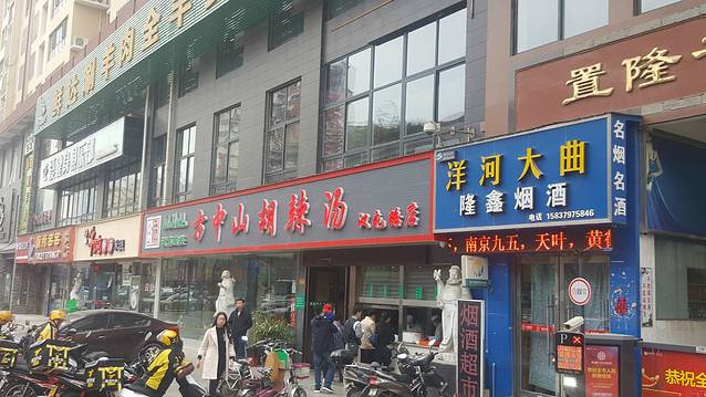 来河南,早点来碗胡辣汤那是必须的,正好酒店旁有家河南有名的胡辣汤连锁店方中山,方中山的胡辣汤是汤味浓郁、汤色靓丽、汤汁粘稠,香辣可口,胡辣汤里的馅料也是十足,牛肉,菌类特别多,价格便宜量特别足,而且网上还有团购,我团了一份精品单人餐,说是单人餐,真心是吃不了啊,两个人吃正好,精品单人餐包括滋补胡辣汤一碗,一张葱油饼,一个牛肉合,葱油饼和牛肉合都是现炸现卖的,吃起来特别香,这顿早点吃的非常满足!哈哈现在想到胡辣汤还想吃!