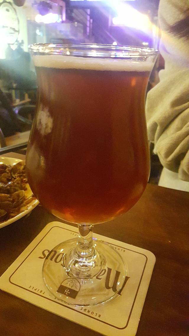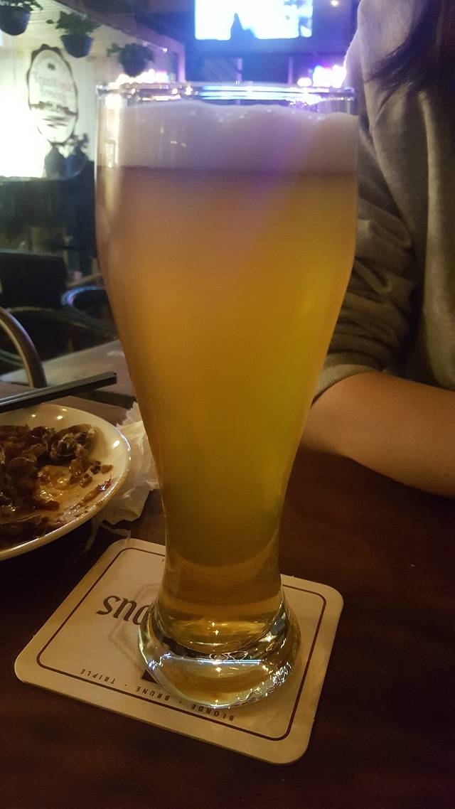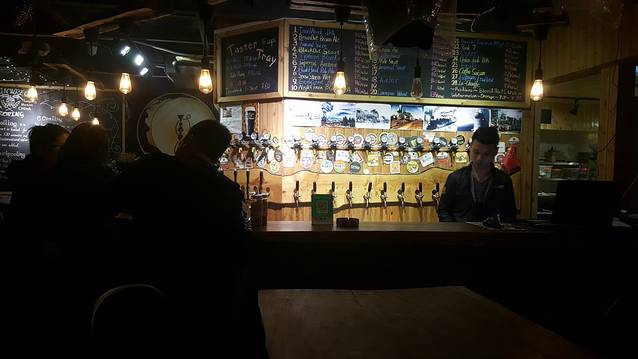 吃完饭,还是照例回酒店睡了一小觉儿来缓解一天的疲劳,今天晚上我们当然是要去精酿酒吧喝上几杯,对于一对热爱精酿啤酒又自己在家自酿啤酒的夫妻来说,每到达一个城市,总要在这个城市寻找特色的啤酒,寻找这里的精酿啤酒,铁马酒馆是从酒花儿app里发现的店,貌似也是现在洛阳唯一一家精酿啤酒馆,这家店鲜啤共有28种,前12种是自家店主自酿作品,后16种为国内比较知名的精酿酒厂出品比如武汉十八号酒馆出品的胶片机牛奶世涛等等,老板是一个美国人,老板娘是个中国姑娘,酒馆人不是特别多,可能是因为洛阳的精酿啤酒还不是很普及,不像北京这样遍地都是精酿啤酒馆,期间来了一波外国人,估计也是来洛阳旅游的,我跟晓晓也是解了馋,尝了10种不同风格不同口味的精酿,同时也享受着在陌生城市的夜。