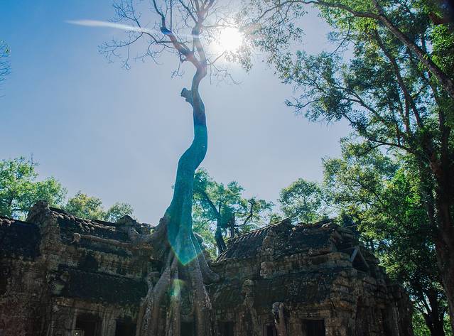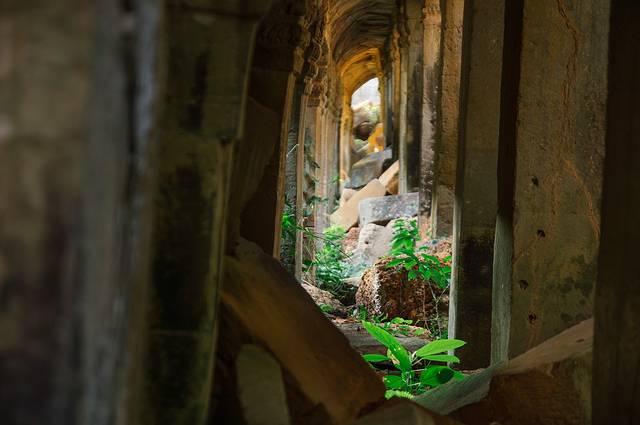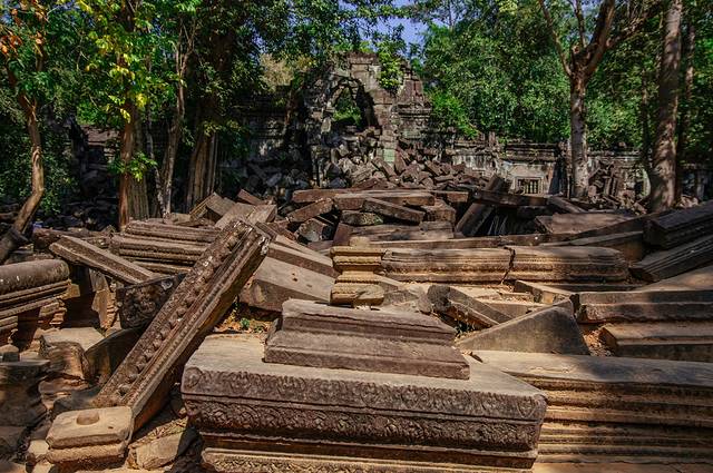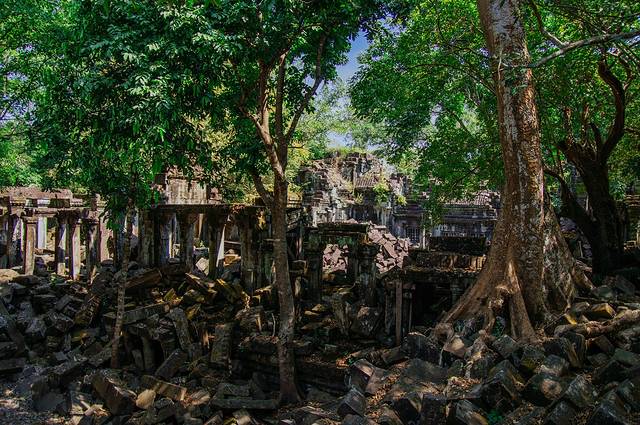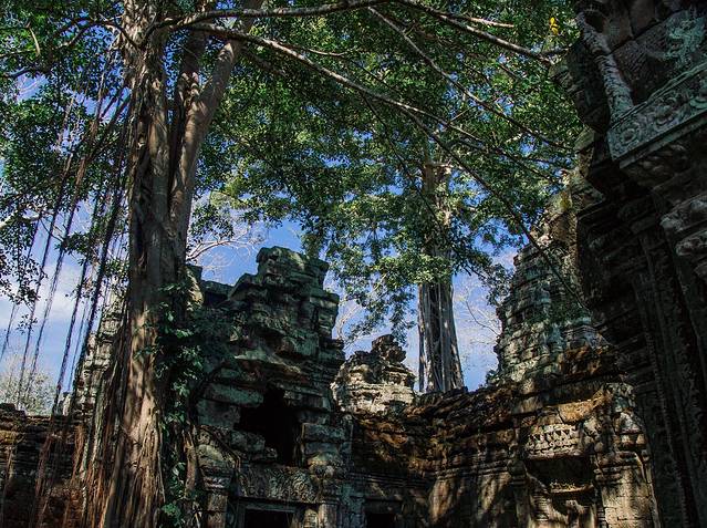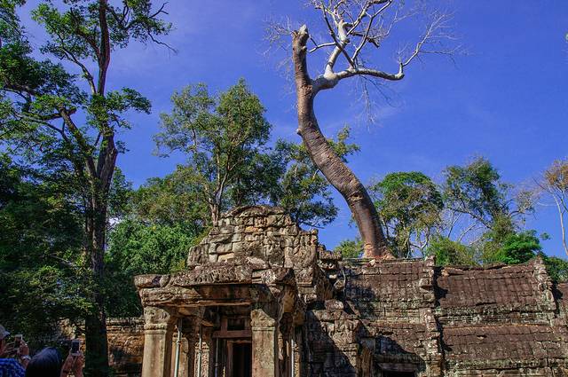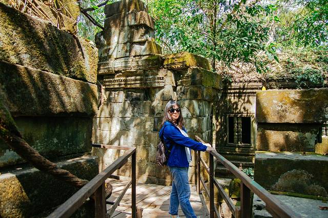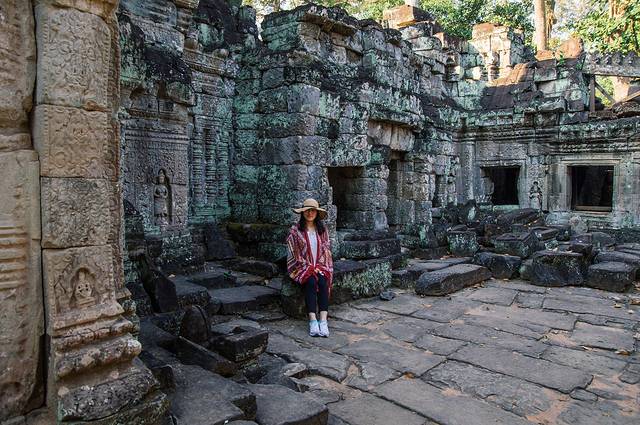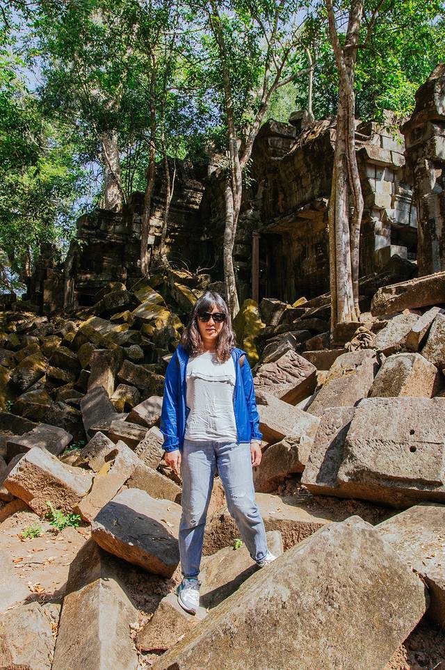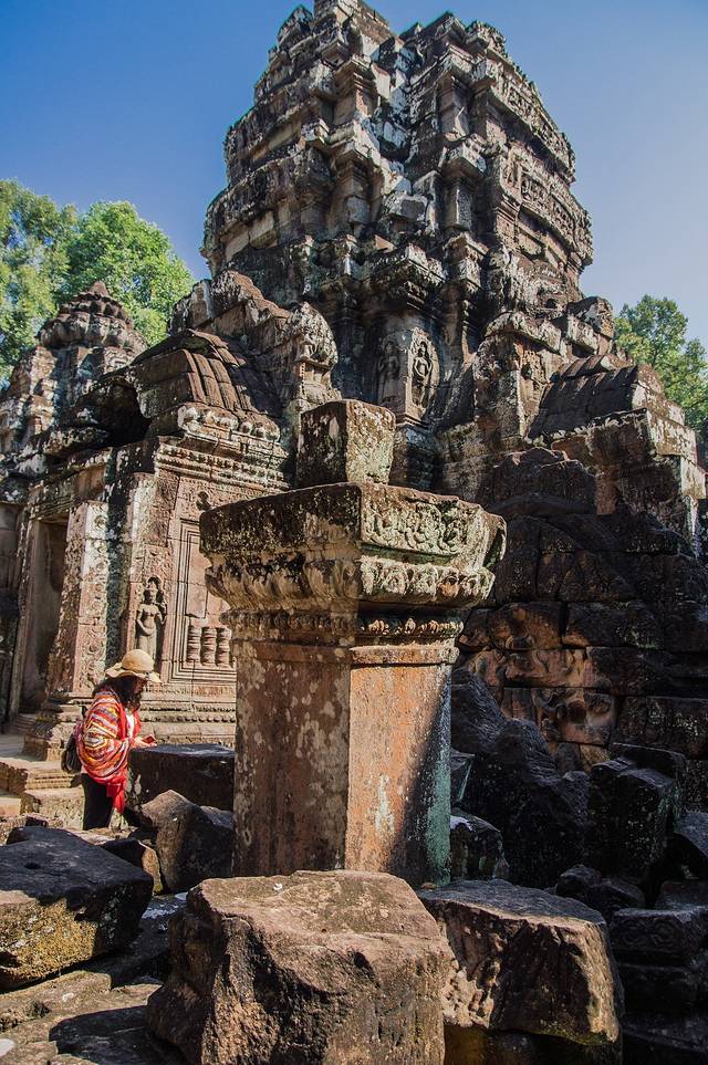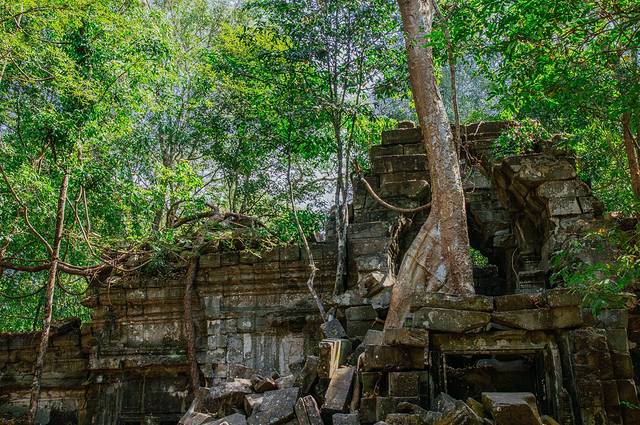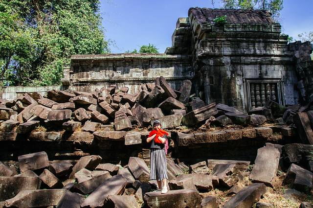 这里和吴哥寺完全不同,即使有在修缮,但依旧能看出损毁的很严重,很多地方都是残垣断壁,碎石堆叠,但树木却又是那么欣欣向荣。
