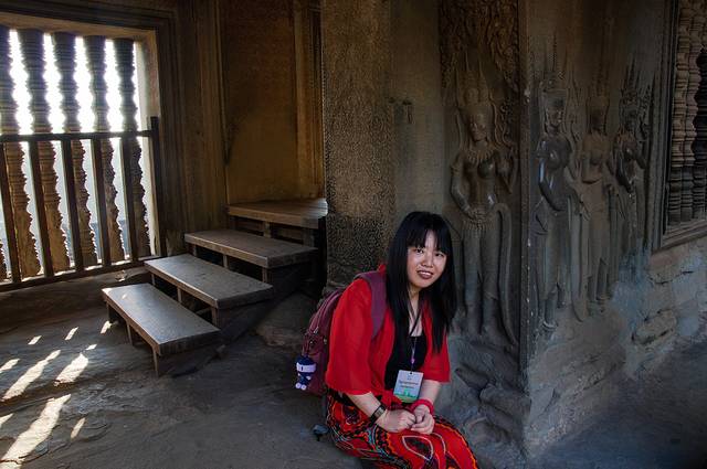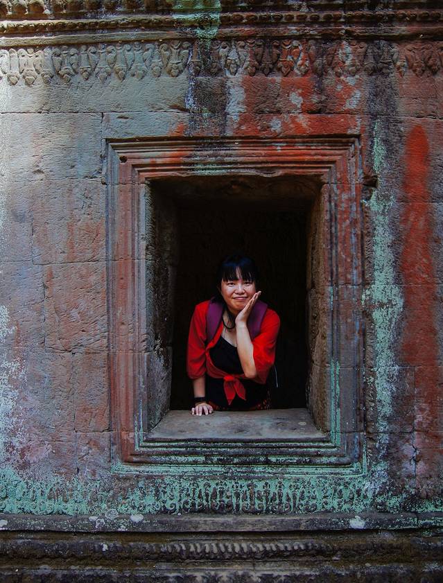 我们在二层呆的时候一直是见缝插针和游客打游击,难得拍到一张满意而且也没有游客的照片,妹妹的表情和四面佛的乍看还有点像。