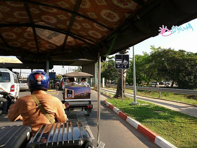 取了行李直走就出机场啦(排队+入境大约也花了40多分钟),一出机场就可以看到各个旅馆派来接机的司机举着游客的名牌。而右手边就是Smart的店,店员会很熟练的帮你把卡装好,把你原先的卡粘在卡套上还给你。我们提前一天联系酒店要了接机,解决通信问题我们就开始搜索司机,很快就发现了写着酒店名字,以及我名字和航班号的名牌。跟着司机上了TUTU车便一路奔向酒店,下午四点日光已没那么强烈,凉风呼呼的吹着比风扇还凉快。