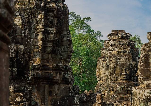 巴戎寺是吴哥王朝最伟大的阇耶跋摩七世亲自参与建造的佛教寺庙,寺中矗立着49座四面塔,每座塔都雕刻着精美的四面佛,所以你在寺中游览,不管什么角度都被着悲天悯人的“高棉微笑”所笼罩,非常震撼也心生一种敬意和感动。