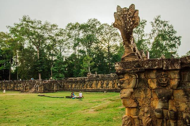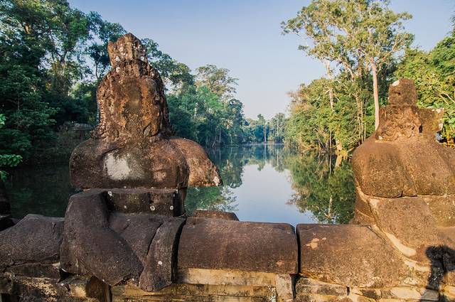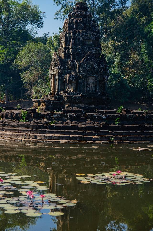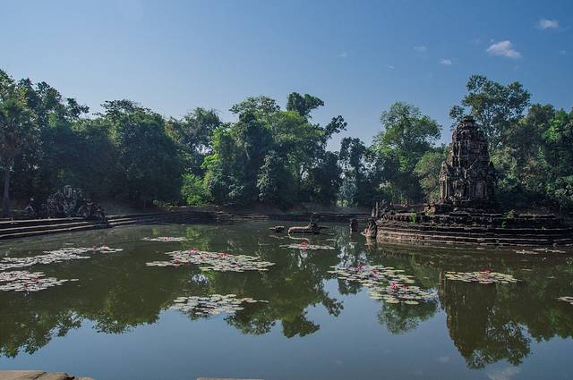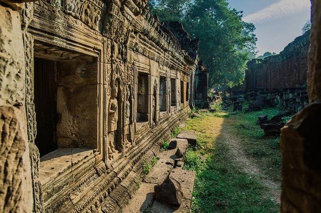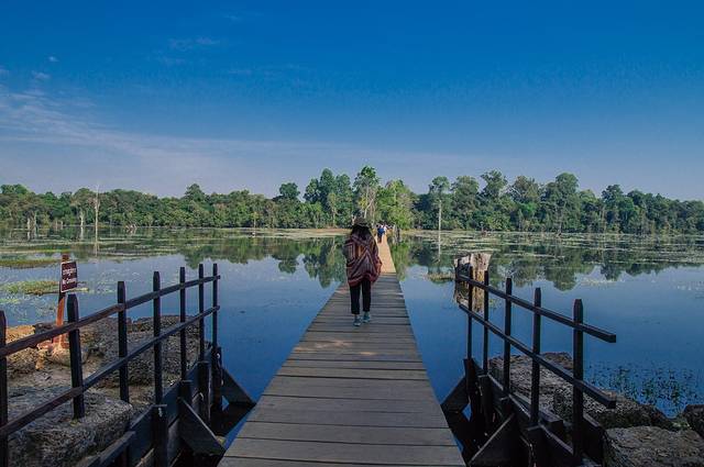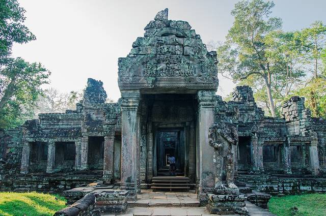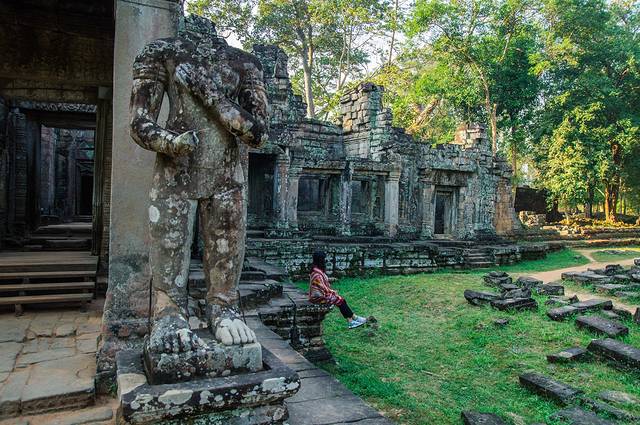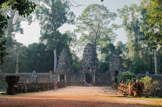 静寂的树林,碧绿的草坪,古老的巨大石殿,手持圣剑的护卫,我们仿佛误入一座失落的帝国,从那规模宏大的建筑和精美的雕刻中幻想吴哥王朝昔日的辉煌。