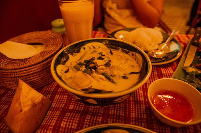 晚饭是在old house吃的,烤鸡肉饭很香而且肉不会柴,沙爹鸡肉串套餐的酱料很正宗,特别有东南亚的感觉。好吃又便宜,最重要的是环境好,有空调,在外面奔波了一天坐在空调房里享用美食的感觉不能更棒。这里的餐厅都是晚上人多,第二天中午我们还是在这家吃的,居然整间店等我们吃完也总共3桌客人,午餐还搭送了一篮烤的香酥的法式面包。