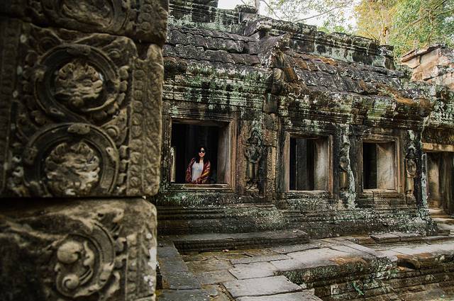这个方方正正的石柱上雕刻着一对对偏偏起舞的apsara,后面还有吴哥窟特有的画框一样的大方窗的地方我特别喜欢。