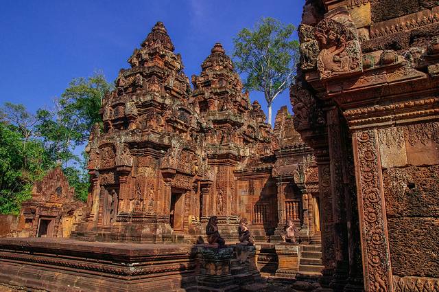 早上吃完一顿丰盛的早餐,拼车的两位大连妹子和司机来接我们,今天的第一站是吴哥窟文化艺术的“珍珠”班蒂斯蕾——女王宫。