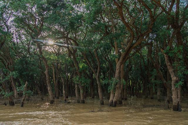很快过了浮村能看到一片红树林,阳光从林间透过来很好看(船工会给你推销在红树林里游船的另外付费项目,小船最多只能坐两人,反正看着很危险,不会游泳的我们没有同意,船工小哥很不高兴,后来全程都没怎么搭理我们)。