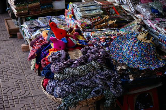 我们发扬走哪逛哪的本事抱着台相机开始乱晃扫街,沿着暹粒河走几步就能看到老市场了。老市场是个四方状的区域,有点像我们这儿的商品城,一个大市场外围,里面都布满了大大小小的格子间,里面琳琅满目摆满了当地特色的物件。