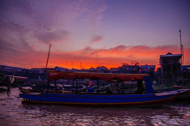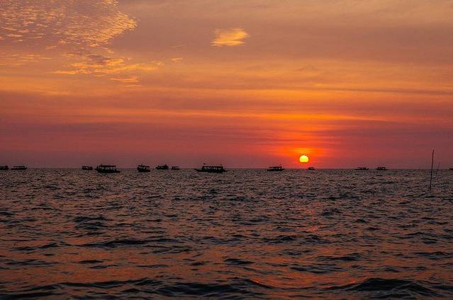 完美的洞里萨湖日落