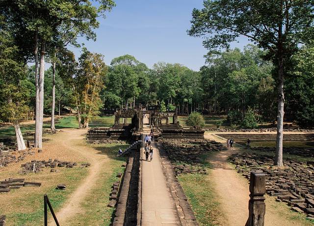 接下来我们进入通王城正式开始大吴哥的观赏。大吴哥是指巴戎寺、巴芳寺、空中宫殿、战象平台等相对集中的几个寺庙,都在一条路的边上,可以顺路参观下来。其中巴芳寺和巴戎寺的规模算是比较大的,也比较有特色,我们时间有限就选择参观这两个寺。
