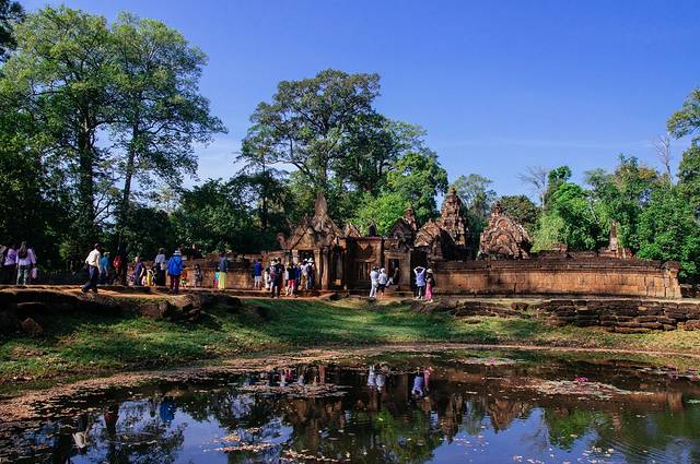 8点出发到达已经将近9点了,女王宫非常小,但雕刻非常精美而且保存非常完好。这是参道两边的荷花池,不管多小的寺庙建筑的规范都是一脉相承。