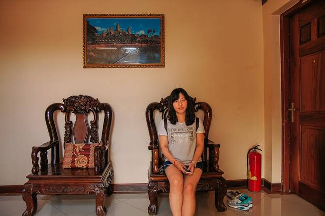 暹粒的时间比我们早一个小时,广州一点多的航班飞到暹粒正好是下午3点,降落前的景色便是一望无际的平原。暹粒的机场很小,下了飞机需要自己走到航站楼,进去就是入关的大厅,透过那排办理入境手续的柜台还能看见后面取行李的转盘。当然入境单是在飞机上填好的,我和妹妹不例外的被要了“小费”,我装出一脸懵逼的表情望着工作人员就是不给,后来她盖了章就态度很不好的把我的出境单和护照扔出来了,而妹妹的出境单居然没给。在入境处有个巡逻的工作人员检查他们的工作,有什么问题找他就好,我们很轻松的把妹妹的出境单要回来了——这些人找中国人要小费的毛病就是那些旅行社惯的,有骨气的还是要坚决say no哟。