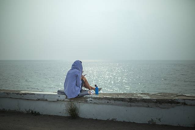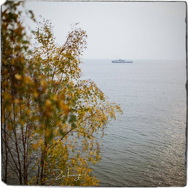 缆车在冬季其实是个滑雪场,非滑雪的季节就作为观光索道运行,国外游客很少,基本都是俄罗斯本地人带着孩子来玩的比较多。坐上几分钟就可以上到一个小山头,可以眺望利镇秋日的五彩山林。然后附近还有一个俯瞰贝加尔湖的View point,视野相当不错。不过这糟心的雾霾挥之不去,只能看个打码的贝加尔了。