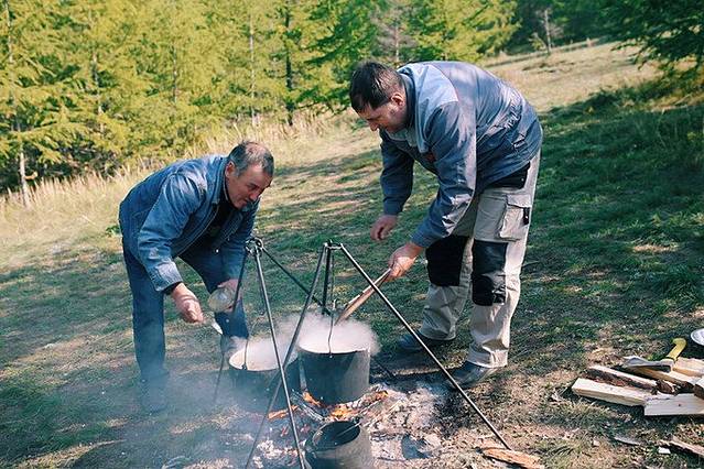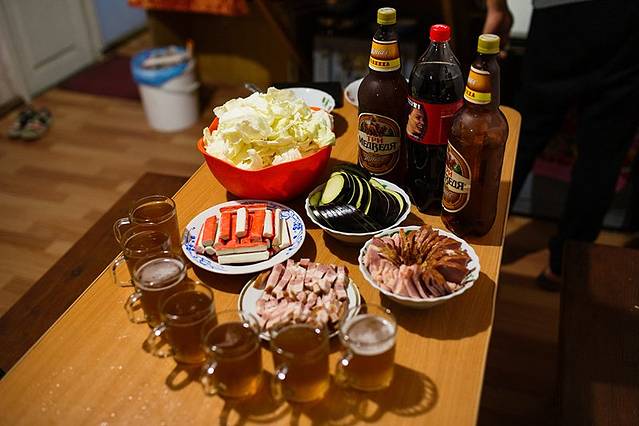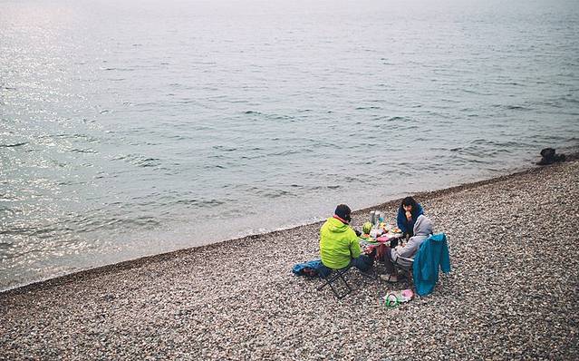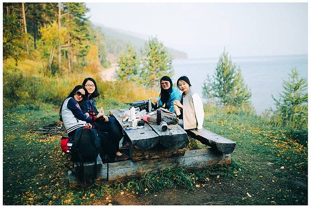 俄罗斯人民的玩耍方式就是在河边的小木屋里坐坐,看看湖聊聊天。还有个进阶简化版本就是直接在湖边搭个桌子就开聊,仔细看桌上还放着大西瓜。9月底的贝加尔湖已经是深秋,湖边的风真心冷,战斗名族这种顶着寒风吃西瓜的娱乐精神真是让人佩服。
