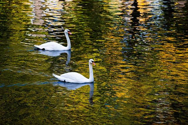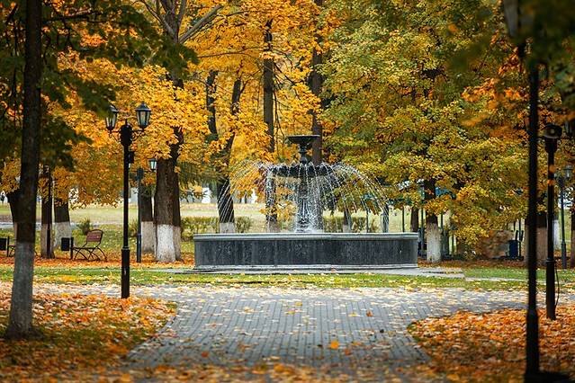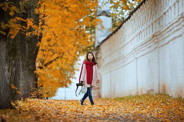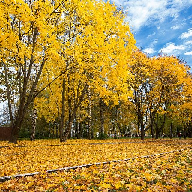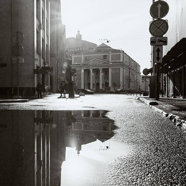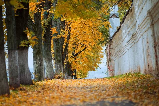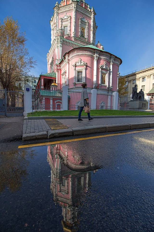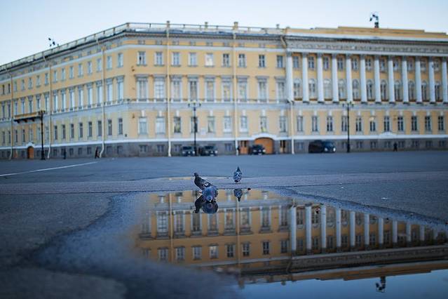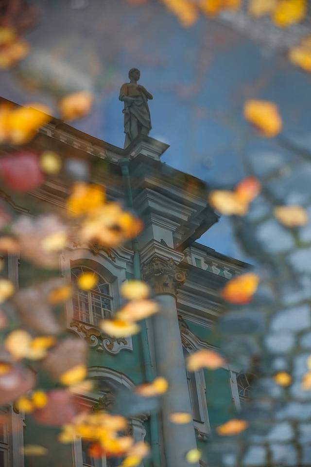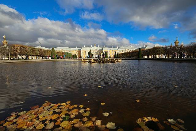 冬宫外的一汪水潭,水潭里落下的黄页给冬宫的倒影做了很好的前景。