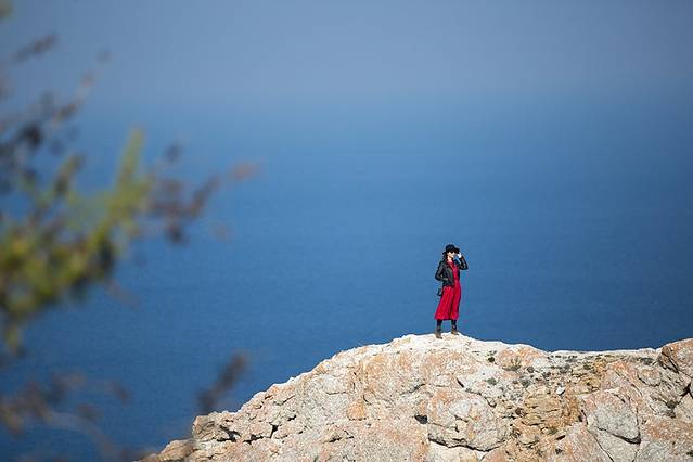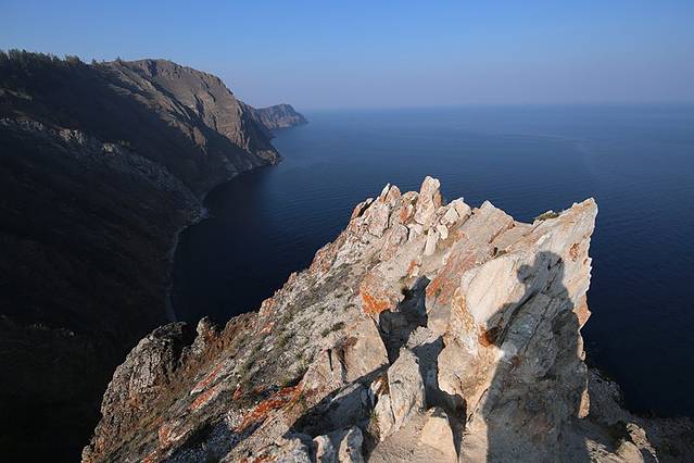 翻过小山,眼前就是一汪碧蓝的贝加尔湖,剩余的路程基本是沿着湖岸走。告别了雾霾,贝加尔湖变成了深邃的蓝色。虽然美的让人窒息,我们还是不得不加快了脚步。