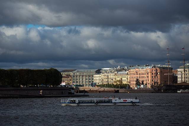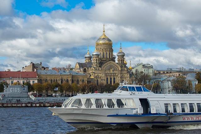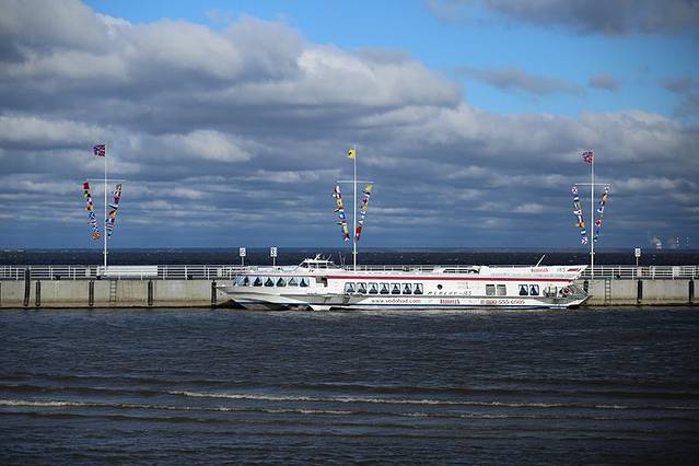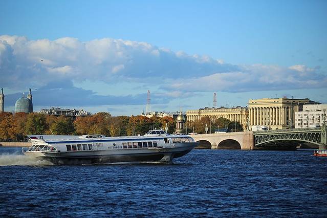 从夏宫回市区可以坐水翼船,下花园沿着中央大道走到芬兰湾就是码头,可以先把船票买了再回头慢慢逛。坐水翼船回到市内大概要30多分钟。当船从芬兰湾进入涅瓦河后,就可以在船上欣赏两岸的建筑。下船的地点就在冬宫附近,非常方便。