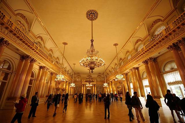 如果说叶宫是俄国女皇们的后花园,那夏宫就是俄国沙皇爷们儿的小别墅。不过明显的,俄国老爷们的审美和对骄奢淫逸的诠释力就不及我们的女皇陛下们了。夏宫的精彩程度应该说不及叶宫,但是人家也有绝活了儿,那就是夏宫的喷泉。