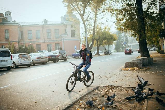 周末清晨,雾霾还未散去,8点多了阳光还是懒洋洋的没一点热度。大街上冷冷清清,只有有轨电车和鸽子们按时出勤。一路从青旅出发,沿列宁大街转到卡尔马克思大街,沿路都是2,3百年历史的老建筑,又或者是虽然已经老旧,但还是刷成了各种清新颜色老木房子。简直完美契合我们对俄罗斯小城的所有想象啊。反正结果就是从青旅走到亚历山大三世纪念碑广场15分钟的路程,我们来回花了1个多小时。