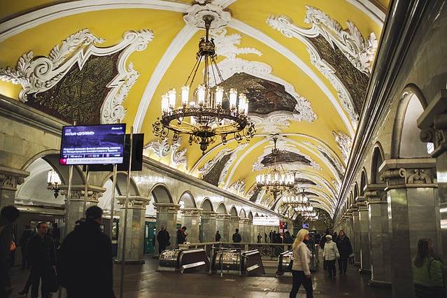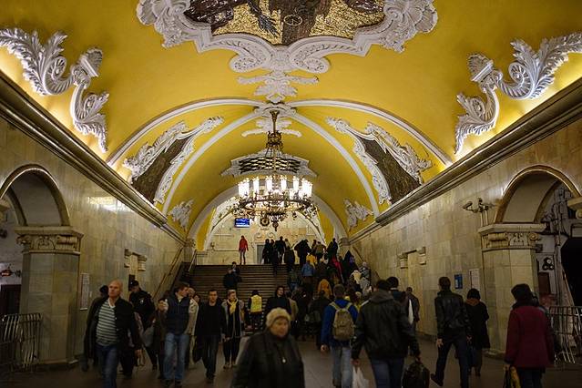 莫斯科地铁站的建筑造型各异、华丽典雅。每个车站都由国内著名建筑师设计,各有其独特风格,建筑格局也各不相同,多用五颜六色的大理石,花岗岩,陶瓷和五彩玻璃镶嵌除各种浮雕,雕刻和壁画装饰,照明灯具十分别致,好像富丽堂皇的宫殿,享有“地下的艺术殿堂”之美称。(来自百度)