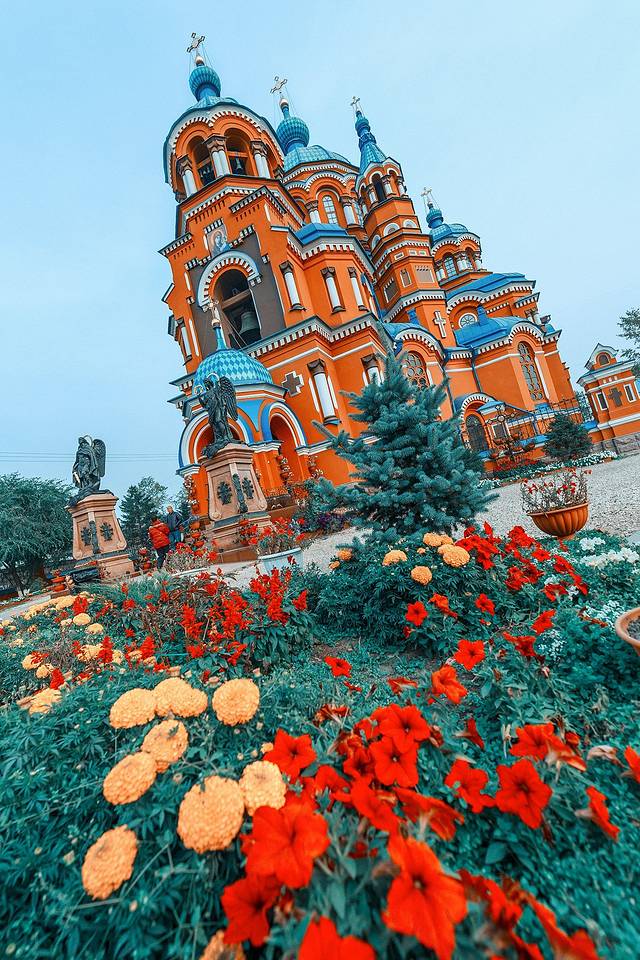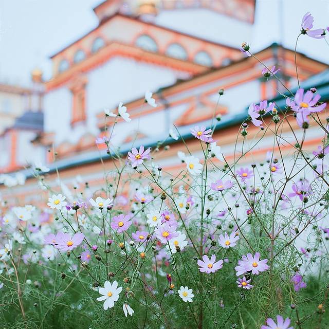 这不是在西藏到处都能见到的格桑花么?作为背景的是主显节大教堂,有300多年的历史,是伊尔库茨克第二古老的建筑。
