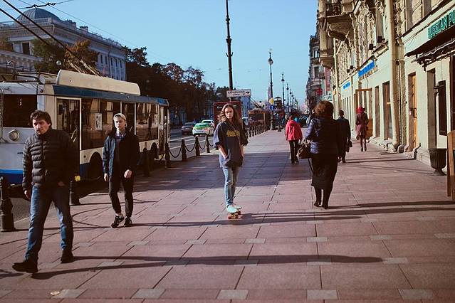 笔直宽阔的大街上两边林立的欧式风格建筑充满了厚重的历史感。不同教派的教堂也在这条大街上和平共处,相安无事。这里感觉更像是欧洲,而莫斯科就明显带着更多老苏联的味道。其实从地理位置上看,圣彼得堡处比莫斯科更靠西部,紧邻芬兰,通过波罗的海就是瑞典,挪威,德国等国家。因此,圣彼得堡也被认为称为是“通往欧洲的窗口”,“在俄罗斯城市中最欧化,但在欧洲城市中最俄罗斯化。”