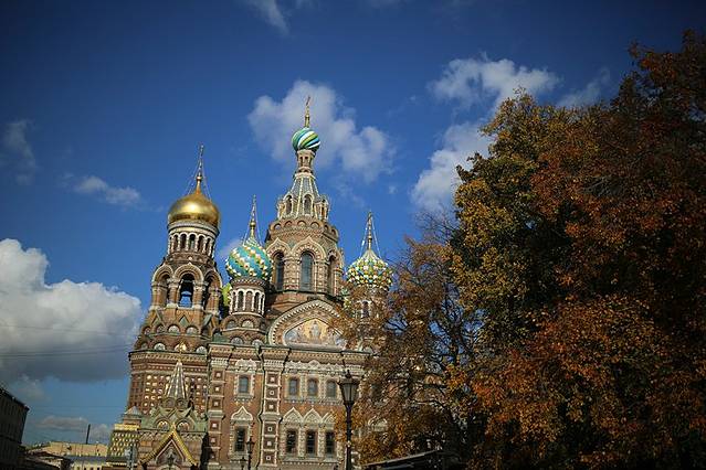不过相比圣瓦西里,滴血的规模要更大一些,听说内部有大片马赛克的装饰,也可以秒杀圣瓦西里。为什么是听说呢?因为本来是想乘着那天天气好先多走一些地方,教堂的内部准备过两天再来看。于是印证了两句话:第一句叫一失足成千古恨,第二句是走过路过千万别错过。反正当我们几天后再来的时候发现大概是因为类似于内部装修的缘故,教堂要暂时关闭一段时间。所以只能和大教堂华丽丽地错过了。