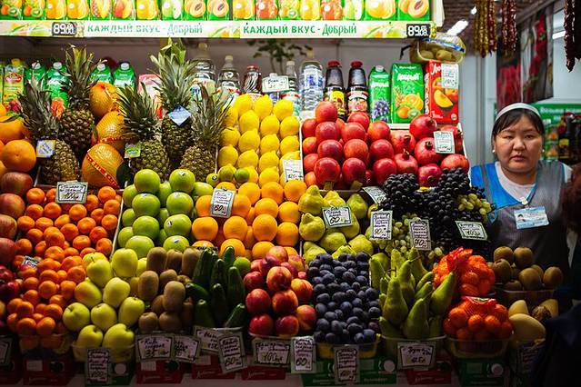 一大早小巴就很准时地来民宿接我们,一个小时后我们又回到了伊尔库茨克。小巴会在中央市场停留一个小时以后继续出发往奥利洪岛。反正要等,几个小伙伴就准备去随便逛下买点水果什么的。结果没想到这一去就没影了,快开车了才奔回来。异口同声地说这个市场好有趣没逛够,于是决定从奥岛回伊尔库茨克后再来逛一下。